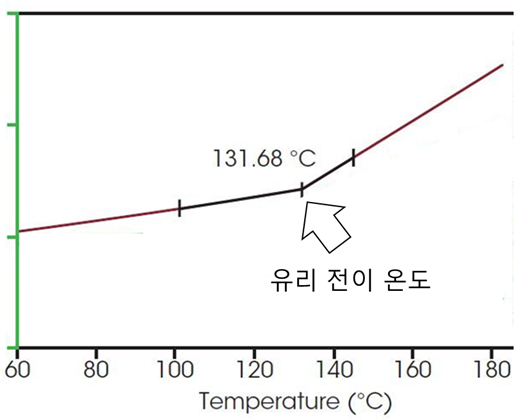 유리 전이점(glass transition temperature): 결정질의 고체를 구성하지 못하는 고분자에서 흔히 관찰되는 유리 전이라는 특별한 변화가 나타나는 온도. 고분자를 가열하여 온도를 높이면 운동에너지가 증가하면서 유동성을 보이는 순간이 나타나는데 이 온도를 유리 전이점이라 합니다. 유리 전이점은 고분자의 특성인데 고분자의 분자량 및 조성에 따라 달라집니다.