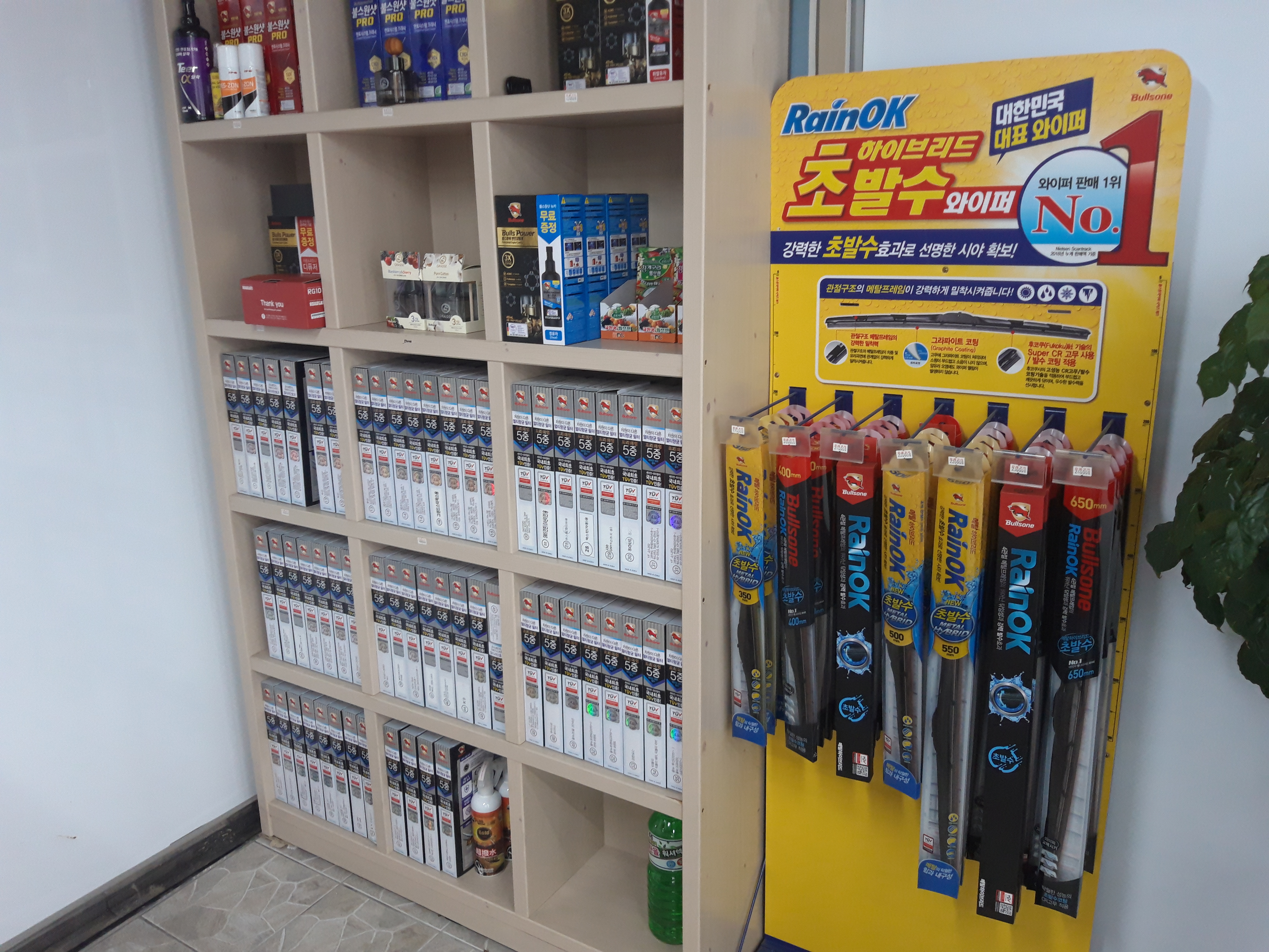 세차가 진행되는 동안 안에서 쉴 수 있는 공간이 있었어요. 와이퍼나, 엔진오일과 같은 자동차 관련 제품들도 다양하게 전시돼 있어서 충동구매를 할 뻔했지요 ㅋㅋ