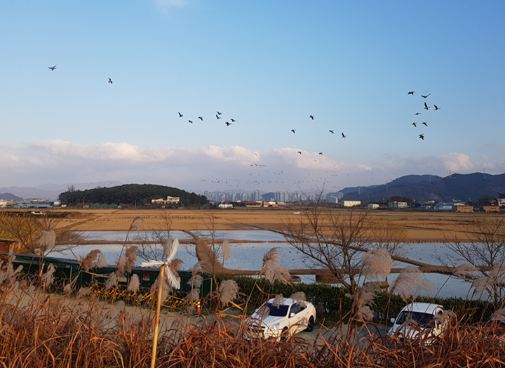철새들이 날아다니고 갈대가 어우러진 멋있는 곳이었어요. 저수지 근처의 논밭에도 철새들이 앉아서 쉬고 있는데, 가끔 한 번에 날아오를 때가 있어요. 그때를 영상으로 찍고 싶었는데 실패했네요 ㅠㅠ
