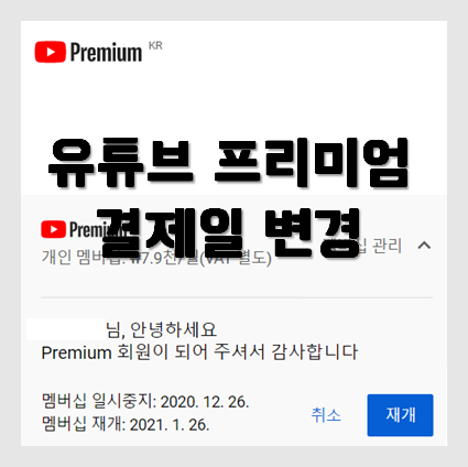 이렇게 일시 중지한 후 원하는 날짜에 다시 프리미엄을 재개하는 방법으로 결제일을 변경할 수 있습니다.